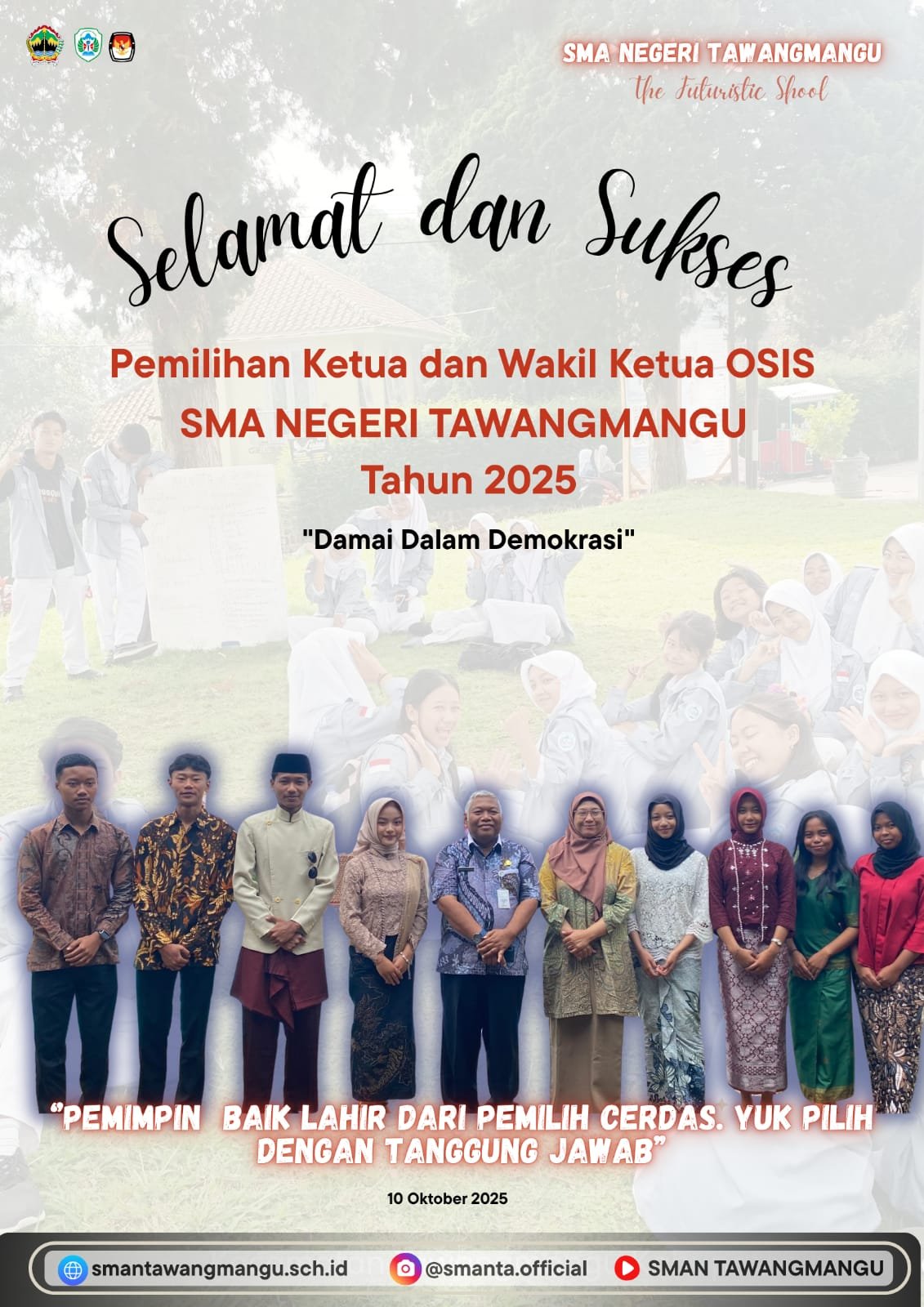 Read MoreSMA Negeri Tawangmangu kembali melaksanakan kegiatan tahunan Pemilihan Ketua dan Wakil Ketua OSIS Tahun 2025 dengan mengusung tema “Damai Dalam Demokrasi.” Kegiatan ini menjadi salah satu bentuk nyata pendidikan karakter di lingkungan sekolah, di mana seluruh siswa diajak untuk memahami dan mempraktikkan nilai-nilai demokrasi melalui proses pemilihan yang jujur, adil, dan bertanggung jawab. Pemilihan OSIS…