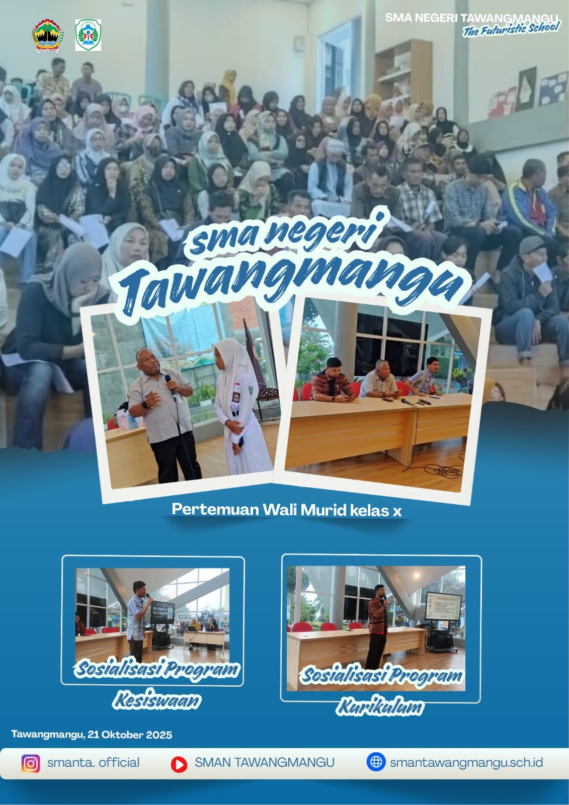 Read MoreTawangmangu, 23 Oktober 2025 — SMA Negeri Tawangmangu melaksanakan kegiatan Pengambilan Hasil Belajar serta Sosialisasi Peraturan Akademik dan Tata Tertib Sekolah bagi orang tua dan peserta didik. Kegiatan ini menjadi momen penting untuk memperkuat komunikasi antara pihak sekolah dan orang tua dalam mendukung perkembangan akademik maupun karakter siswa. Melalui kegiatan ini, sekolah menyampaikan informasi mengenai…